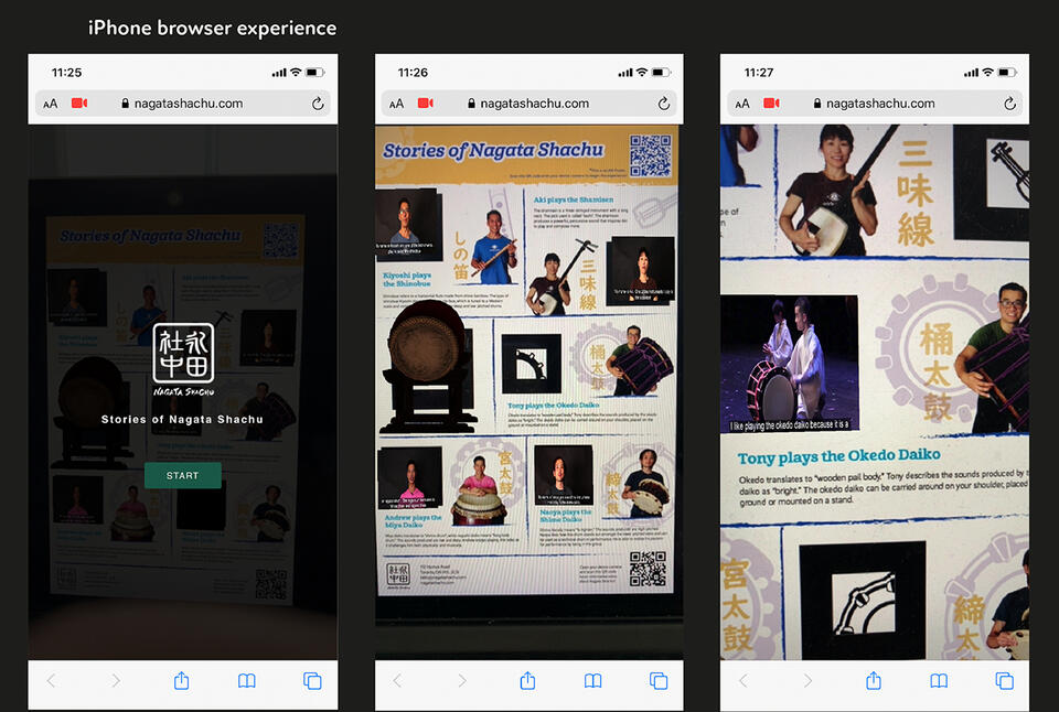 Nagata Shachu in AR is a project outcome from the MIGRATION residency at UKAI Projects. As a collective we collaborated with Nagata Shachu, a Japanese Taiko Ensemble, to digitize and transmit knowledge about the group and also relay informative content to audiences through augmented reality. This content comprised of personalized stories of the Nagata Shachu members In our exploration, we utilized the AR.js coding library and created customized image markers to familiarize ourselves with open source AR, creating our own hosted page for the experience.This experience is hosted at nagatashachu.com/storiesThe posters are accessible in this drive folder.Documentation of the project can be found on the CAM Collective tumblr.